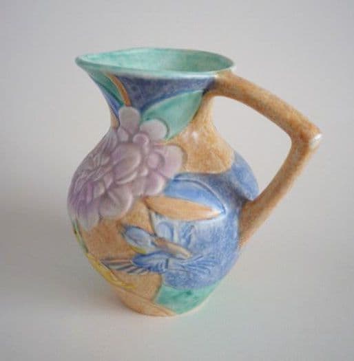 A superb Beswick pitcher modelled with a bluebird and stylised flowers on a fantastic art deco shape. Hand painted in lovely pastel colours on a matt glaze. In excellent condition; no chips, cracks or restoration. Printed Beswick Ware mark. Height 18cm (7.1in)