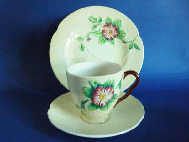A lovely Carlton Ware yellow wild rose trio. Good colours and lovely condition; I don't think they've had much use at all. Diameter of plate 17.5cm (6.8in)
