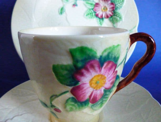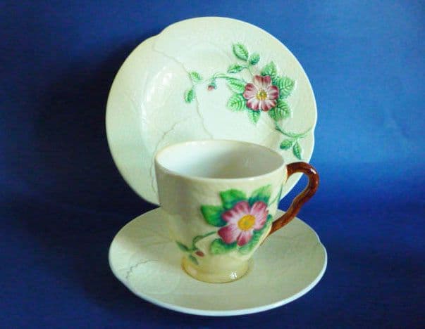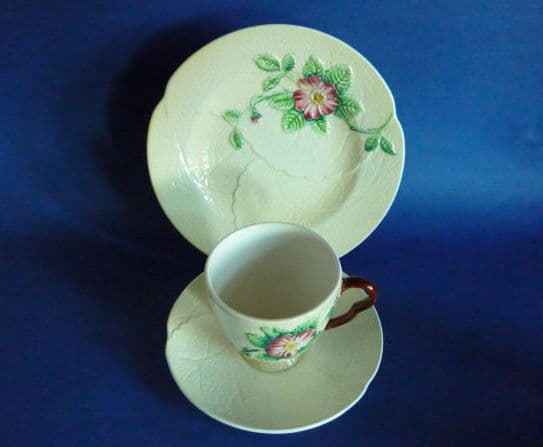 A lovely Carlton Ware yellow wild rose trio. Good colours and lovely condition; I don't think they've had much use at all. Diameter of plate 17.5cm (6.8in)