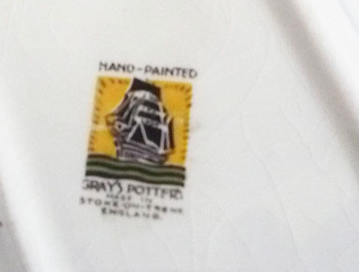 A lovely rectangular dish produced by Gray's Pottery around 1932. Beautifully painted art deco flowers in shades of pink on a green stippled background and finished in best gold. In great condition; no chips, cracks or restoration. Gray's Pottery, Stoke on Trent mark. Length 24cm (9.45in)