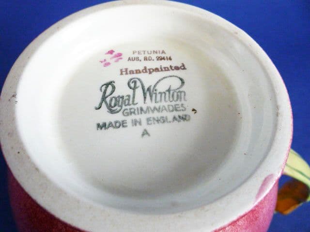A superb vintage Royal Winton mottled pink 'Petunia' jug. An impressive size and in excellent condition, no chips, cracks or restoration. The gilding is good as is the colour. Rare to find this large size especially in such good order. A fine example with the old 1940's Royal Winton mark and Australian registration number. Height 14.25cm (5.55in)