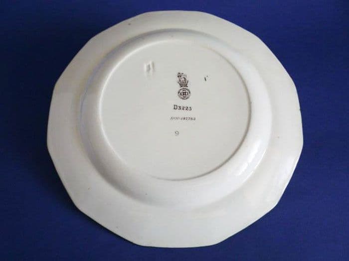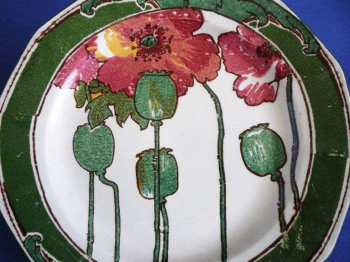 A rare Royal Doulton art nouveau 'Poppies' series B twelve sided dessert plate, slightly smaller than the usual rack plates. A good example of the block printing technique favoured by Doulton for their floral series wares. Lovely shades of pink and green add to this classic art nouveau design. In excellent condition, with only a small amount of crazing (barely noticeable) and a few minor original production imperfections typical of this type of ware. All in all a fine piece that displays beautifully. Printed Royal Doulton with pattern number D3225 and impressed date for 1910. Diameter 21cm (8.25in)