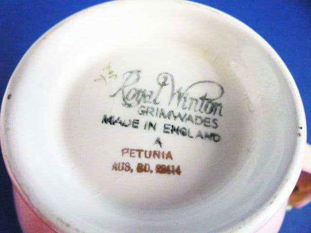 A fine vintage Royal Winton pink 'Petunia' medium size milk jug. In great condition, no chips, cracks or restoration. The gilding is good as is the colour and there's the usual clean glaze crazing typical of these wares. A fine example with the old 1950's Royal Winton mark and Australian registration number. Height 12.1cm (4.75in)