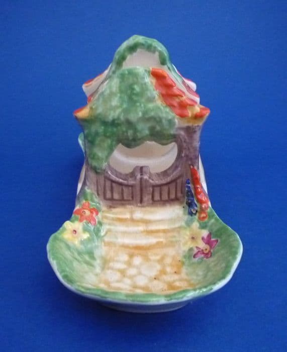 A lovely Grimwades 'Countryside' toast rack with a compartment each end for butter and jam. Beautifully hand painted in bright colours with lots of detail. In excellent condition - no chips, cracks or restoration. Rare to find, especially in such good order. Circular art deco Grimwade's Royal Winton mark with 'Registration Applied for'. Length 17.2cm (6.75in)