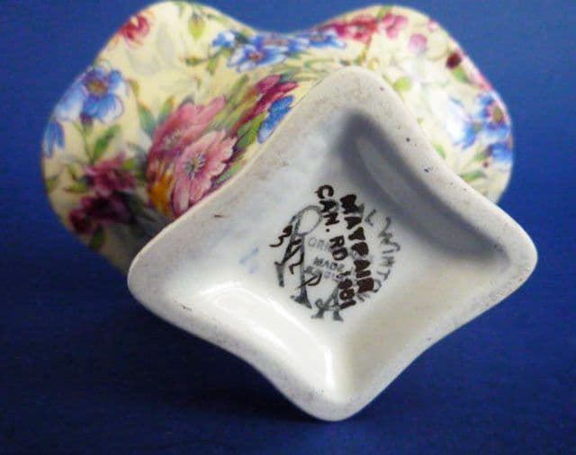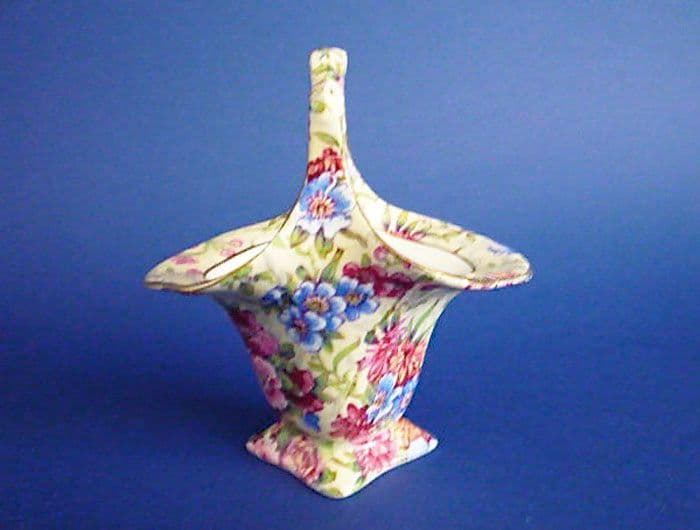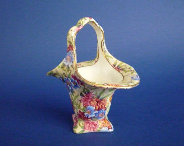 A lovely vintage Royal Winton 'Mayfair' posy basket. Rare to find in such great condition; no chips, cracks or restoration. Always a fresh looking pattern that displays well. A stunning example with the old 1950's Royal Winton, Grimwades mark and Canadian Registration for 1951. Height 10.5cm (4.1in)