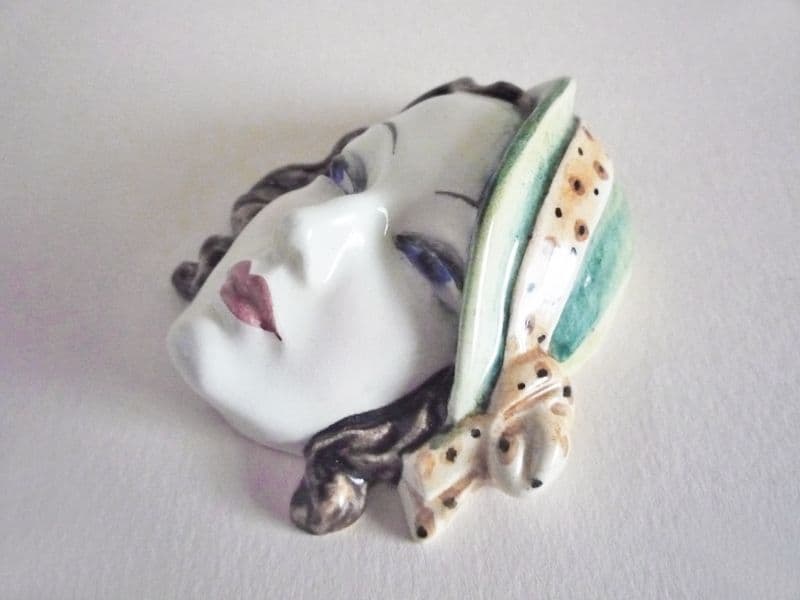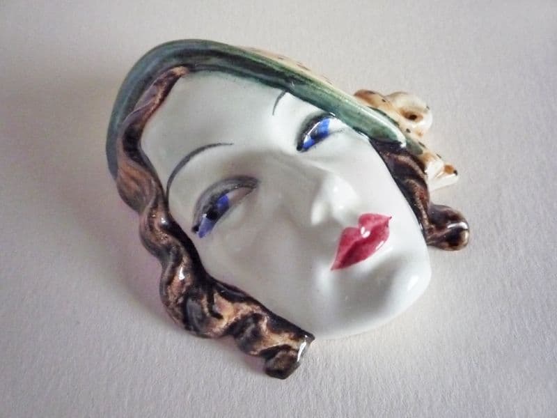 A beautiful miniature wall mask designed by Rudolf Podany for Keramos of Vienna. Finely modelled and delicately painted with lots of subtle detail, it's a rare little gem from the art deco period. In excellent condition - no chips, cracks, crazing or restoration.