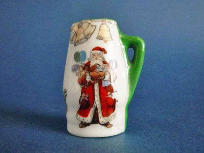 A lovely miniature jug featuring one of the six Christmas Santa Claus themes from this early series (1904-1914). Shows Santa with his arms full of toys and balloons with a seasonal quote on the reverse 'Tobacco and a good coal fire, Are things this season doth require'. Border of bells around the rim. In excellent condition; no chips , cracks or restoration. A rare item to find, especially in such good order. Printed Royal Doulton mark in green. Height 4.9cm (1.9in)