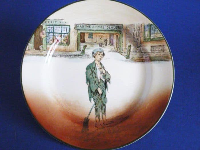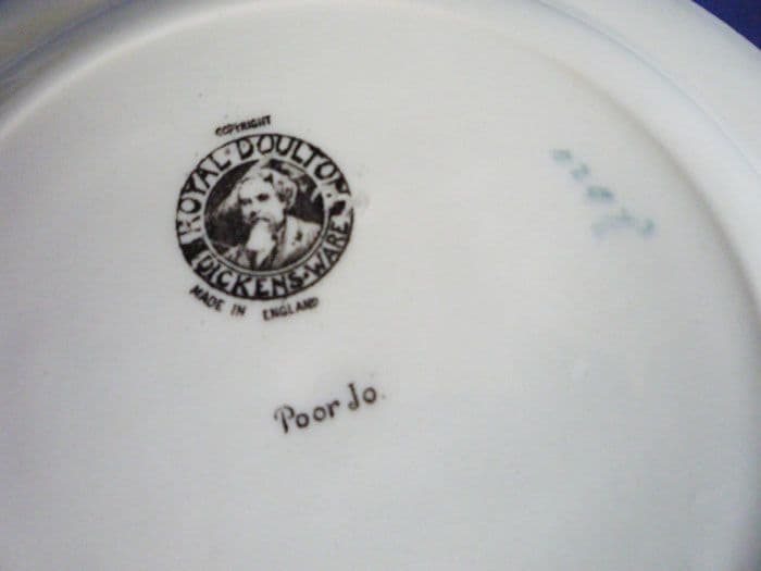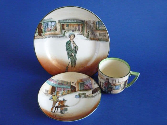 A fine Royal Doulton Dickens Ware 'A' Series trio designed by Charles Noke. The cup with Bill Sykes, saucer with Sam Weller and plate with Poor Jo. In excellent condition - showing little sign of wear. Great examples of this very collectable series. Special Dickens Ware mark, painted pattern number D2973 and plate with impressed date for October 1927. Diameter of plate 19cm (7.5in)