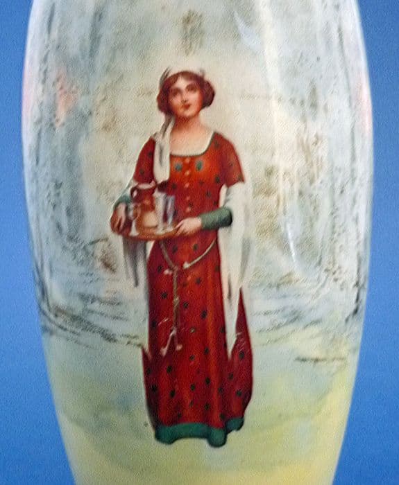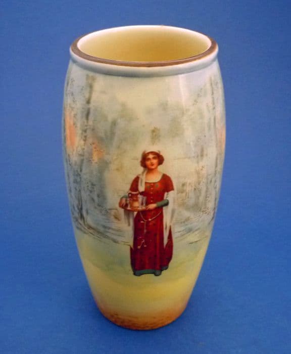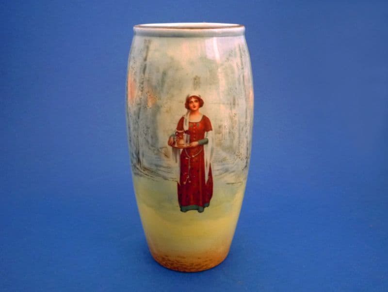 A fine Royal Doulton Shakespeare series 'Anne Page' (The Merry Wives of Windsor) shape 7493 vase. Good colours with the first series polychrome background introduced in 1912. In excellent condition, showing little sign of wear - no chips, cracks or restoration. A lovely example of this very collectable early series. Royal Doulton backstamp with 'Anne Page'. Height 14cm (5.5in)