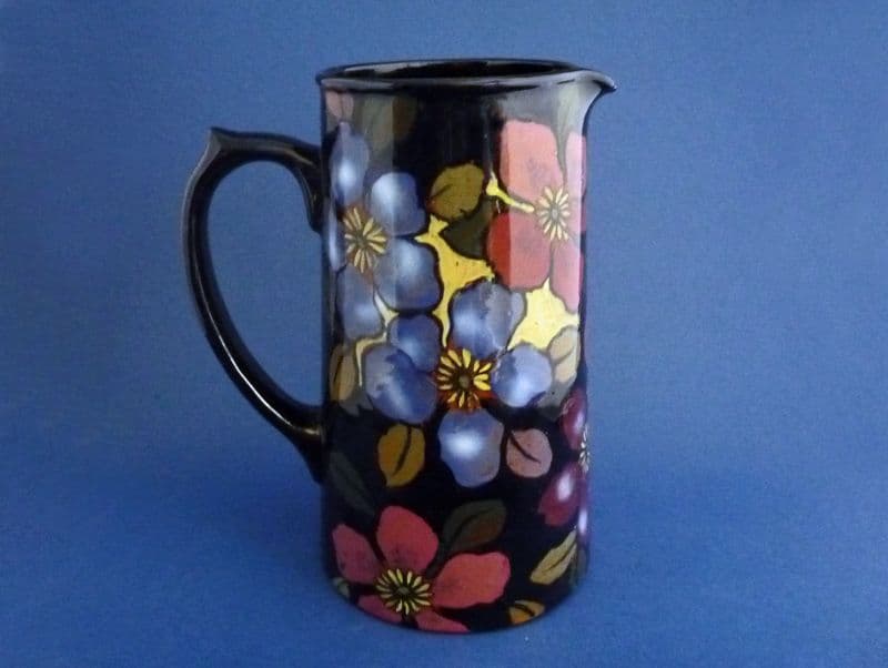 A lovely Royal Stanley jug from Colclough's hand painted Jacobean Ware range produced c1919-28. The vibrant purple, crimson and blue clematis flowers look stunning on this classic shape. In excellent condition - no chips, cracks or restoration. Printed 'Royal Stanley, Jacobean Ware' mark. Height 17.75cm (7in)