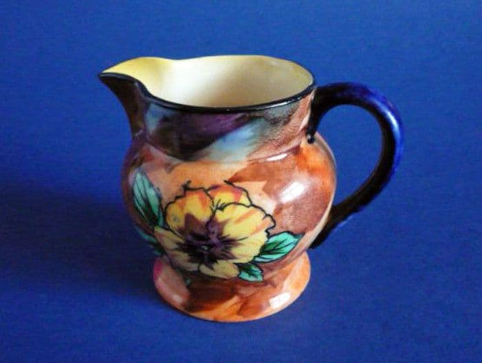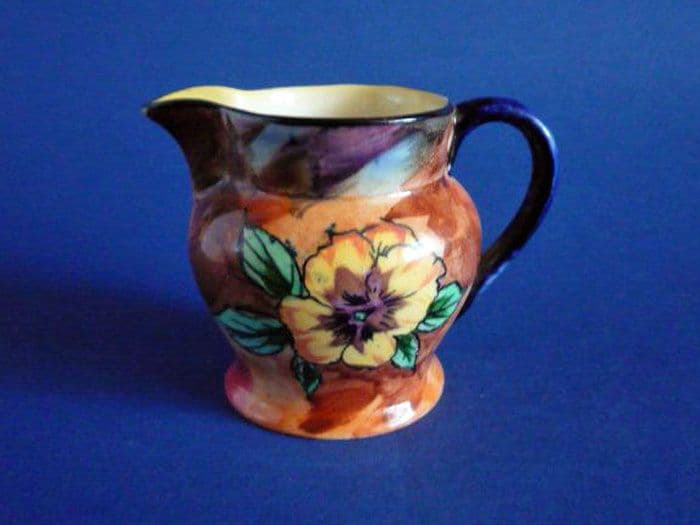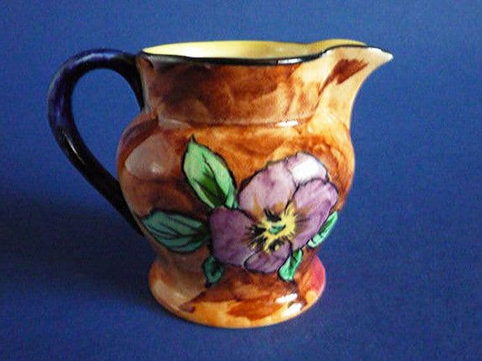 A lovely Viola pattern jug designed by R. Grocott for Hollinshead and Kirkham. Nicely painted and in excellent condition; no chips, cracks or restoration. A gorgeous little display item. Printed H & K Tunstall mark. Height 8cm (3.1in)