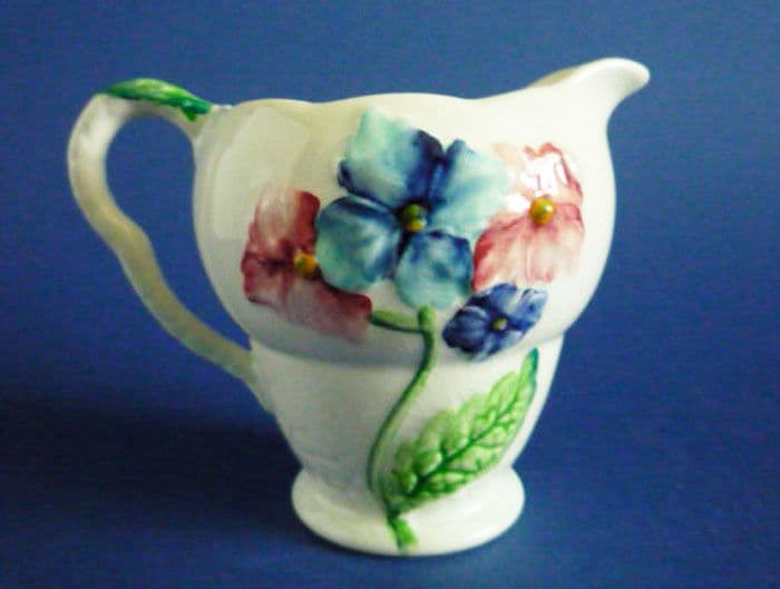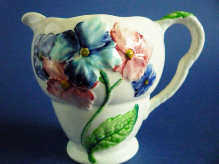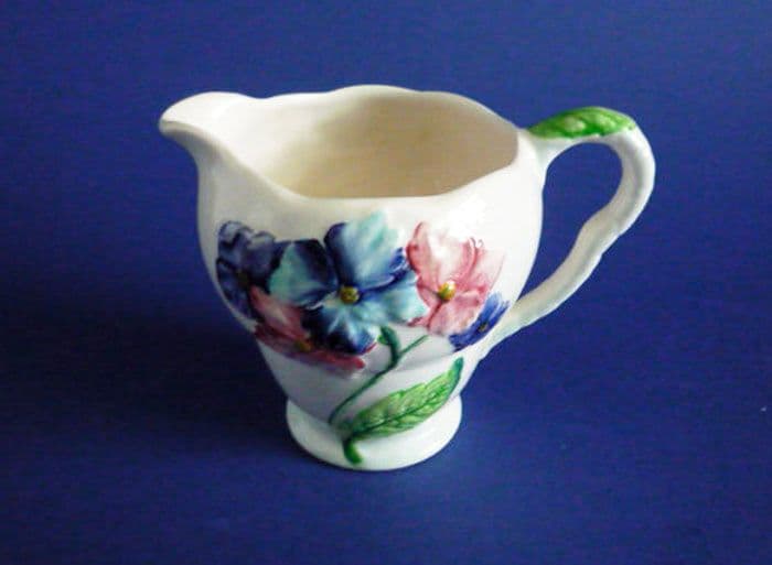 A lovely blue Hydrangea jug by Carlton Ware in excellent condition. Nicely painted flowers in pinks and blues on a fine pale blue background. Rare to find, especially in such good order. Full Carlton Ware script mark. Height 9cm (3.5in)