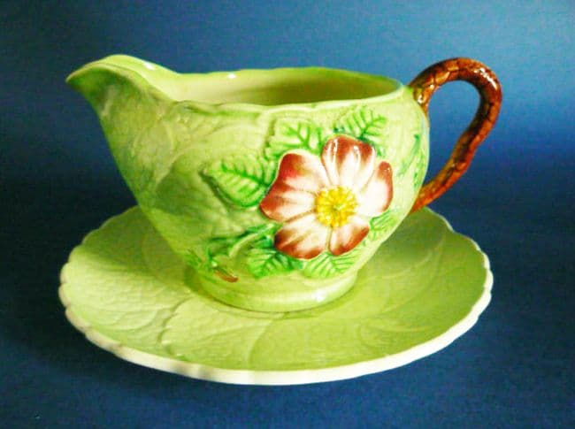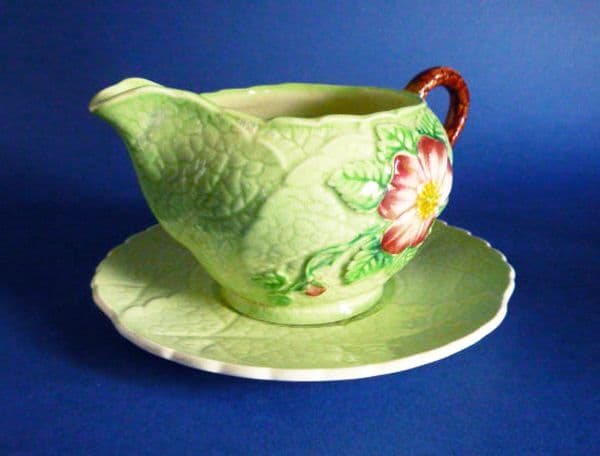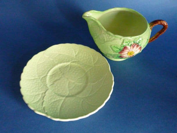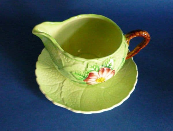 A lovely Carlton Ware design in green wild rose. A small jug and stand with good colours and in great condition. A fine piece which shows the design to maximum effect. Full Carlton Ware script mark. Diameter of stand 12cm (4.75in)