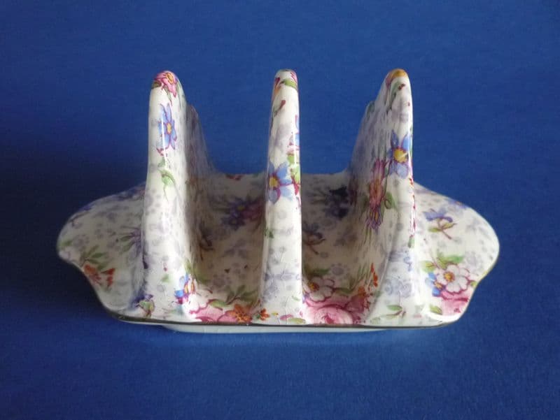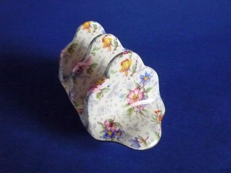 A rare Royal Winton 'Eleanor' three bar toast rack. In lovely condition - no chips, cracks or restoration. A great example of this very pretty and striking design. Circular art deco Royal Winton mark. Length 11.5cm (4.5in)